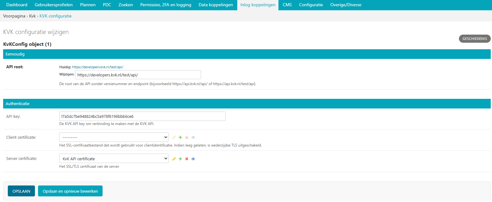 Dit is de configuratie voor de koppeling van het Open Inwoner platform met de KVK. Om Mijn Bedrijven te kunnen gebruiken is het noodzakelijk om de KVK API in te stellen. Hierdoor worden – na het inloggen met eHerkenning - de gegevens van het bedrijf opgehaald en getoond en vooraf ingevuld. Om de KVK API in te kunnen stellen zijn de API key, een client certificate (SSL) en een server certificate (SSL) noodzakelijk.