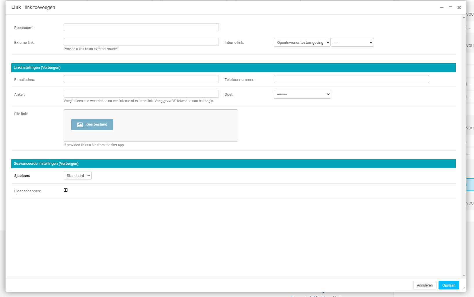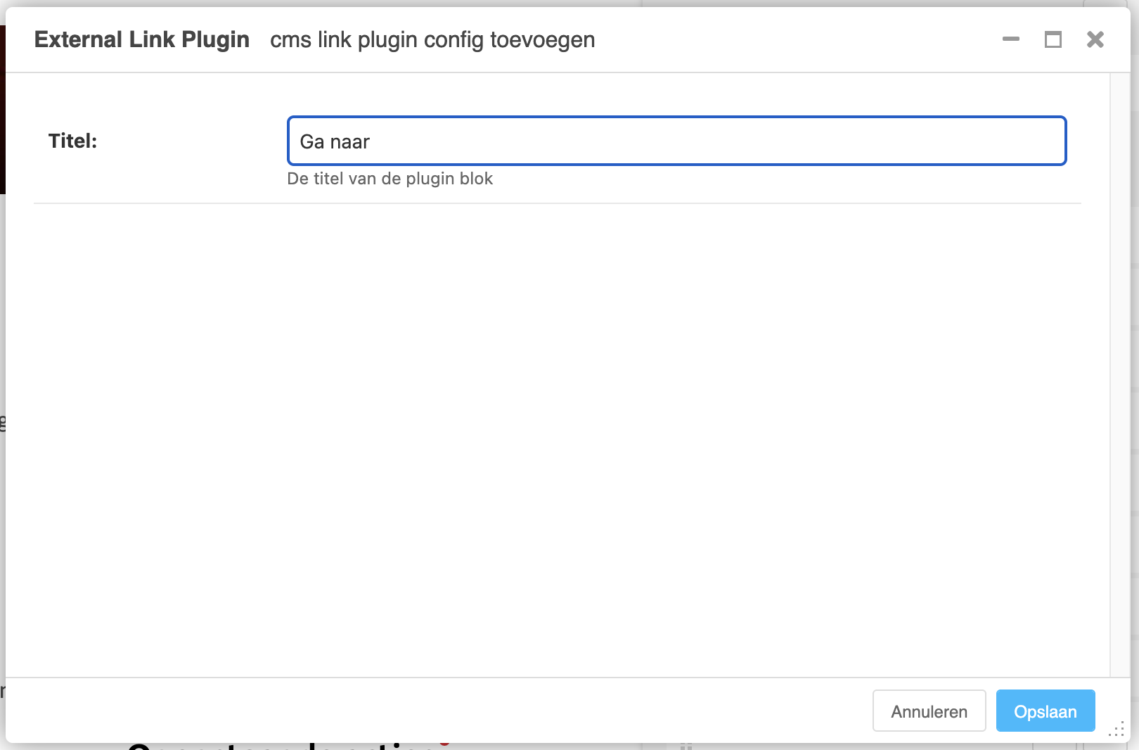 Voeg daarna één of meerdere links via het plus-symbool dat is verschenen bij de externe links plugin via ‘Voeg plugin toe’. Kies daar ‘Generiek’ >> ‘Link’