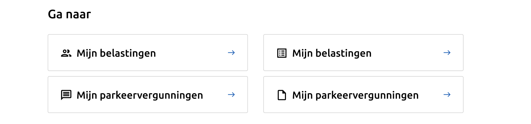 Wanneer u de homepagina bewerkt, kunt u via het plugin menu een nieuw blok toevoegen met 1 of meerdere externe links. Elke ‘Ga naar’ link dient een eigen icoontje te krijgen. De iconenset die in Open Inwoner wordt gebruikt is Material Icons. Deze bevat meer dan 2000 iconen waaruit u kunt kiezen.