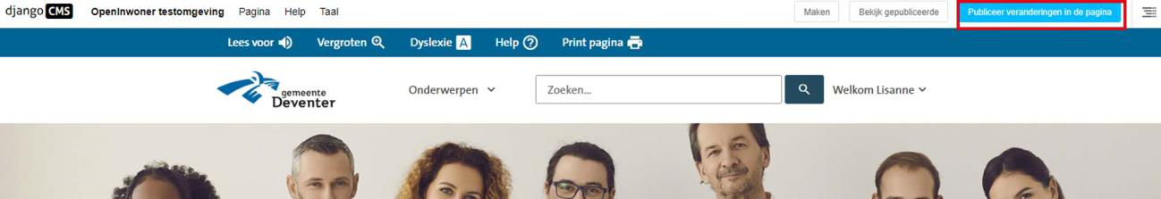 Publiceer de pagina om de wijzigingen definitief te maken.